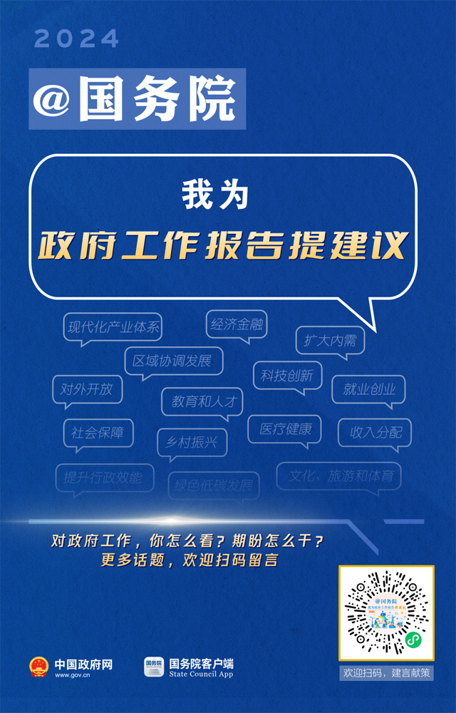 “@国务院 我为政府工作报告提建议”网民建言征集活动已开始!