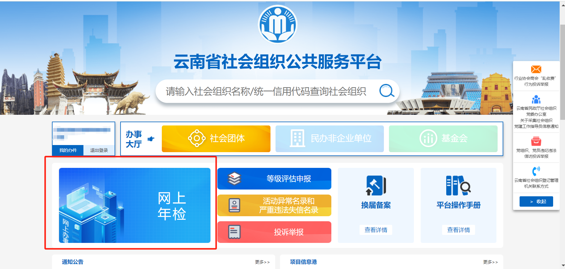 2026年3月1日起,各参检全省性社会团体、民办非企业单位请自行访问“云南省社会组织公共服务平台”(https://ynmz.yn.gov.cn/shzz/)——点击“请登录”