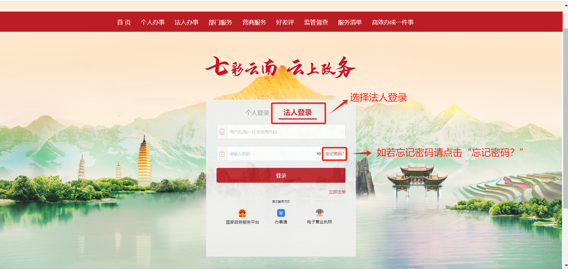 选择“法人用户登录”,输入用户名和密码登陆