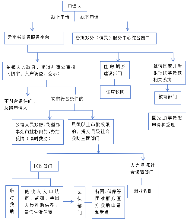 申请类别 | □低收入人口认定、监测 □特困人员救助供养 □最低生活保障 □临时救助 □特困、低保等困难群众医疗救助申请和受理 □国家助学贷款申请和受理 □住房救助 □就业救助