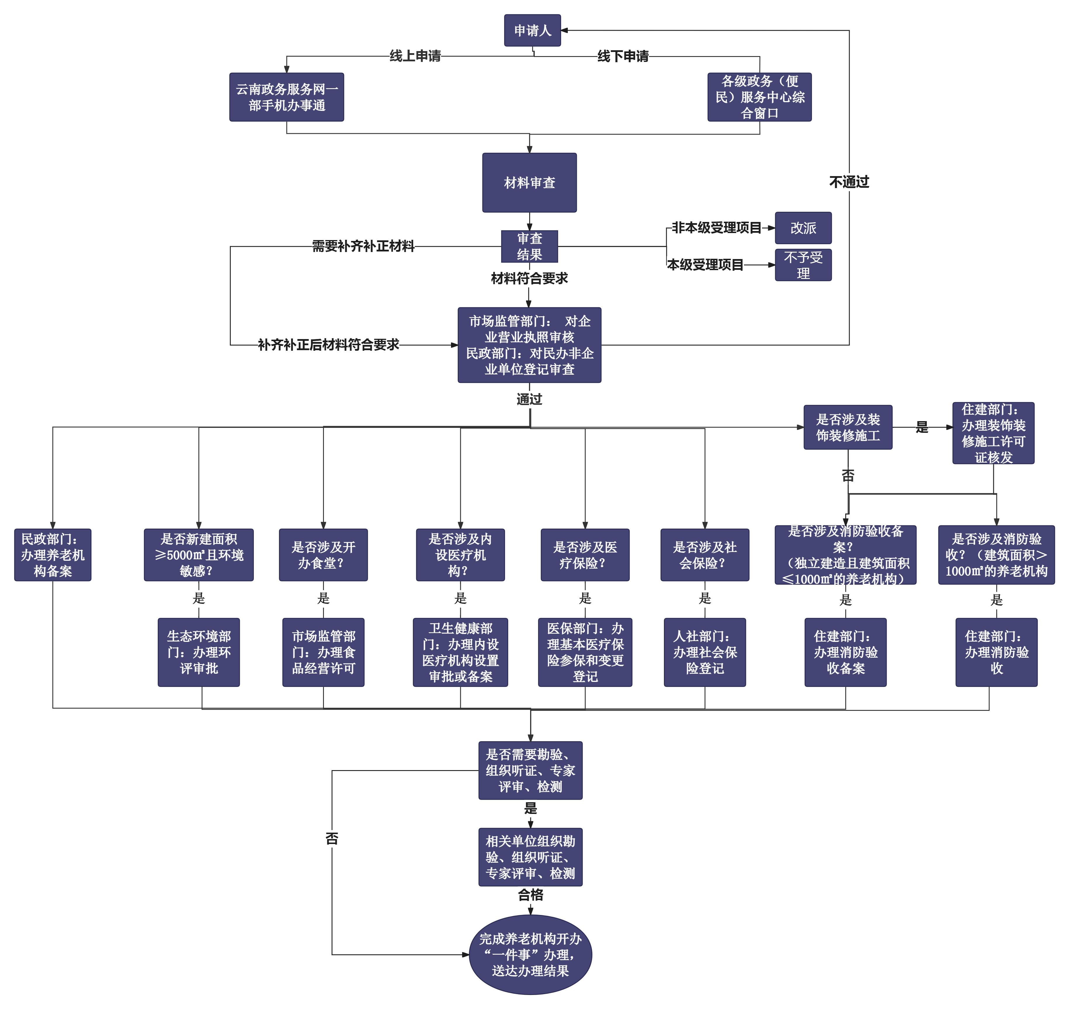 云南省开办养老机构“一件事”业务流程图